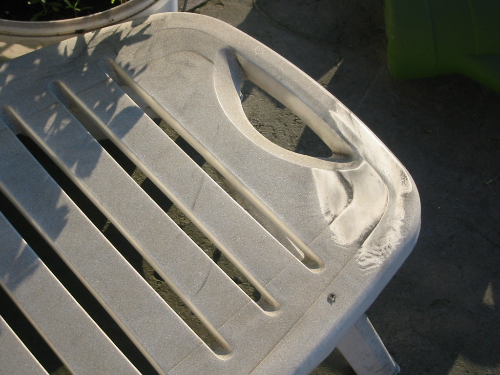 Fénykép a por által belepett kerti bútorról.